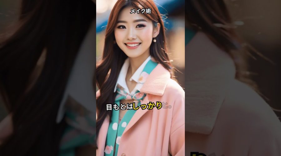 メイクは、ナチュラルだけど目もとはしっかりと。透明感のある肌作りと、美しい目元で印象をアップ。