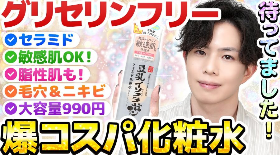 【毛穴&ニキビ悩みに!】プチプラのグリセリンフリー化粧水ついに出た!!敏感肌も脂性肌もどっちもオススメ!【グリセリンフリー最新考察】