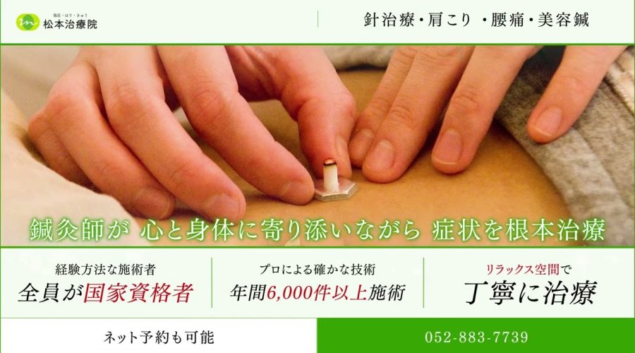 名古屋の鍼灸院なら 松本治療院 052-883-7739 https://www.matsumoto-cl.com/ 名古屋の松本治療院は鍼灸・マッサージ・針治療・指圧・美容鍼が口コミランキング上位人気で腰痛治療がおすす …